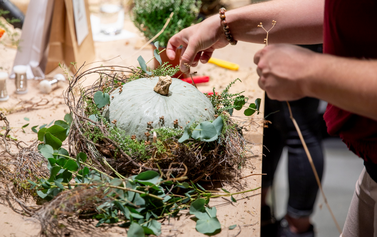 Gemeinsam kreativ sein und doch arbeitet jedes an seinem Werkstück, so dass alle ihre ganz persönliche Herbstdekoration mit nach Hause nehmen können.